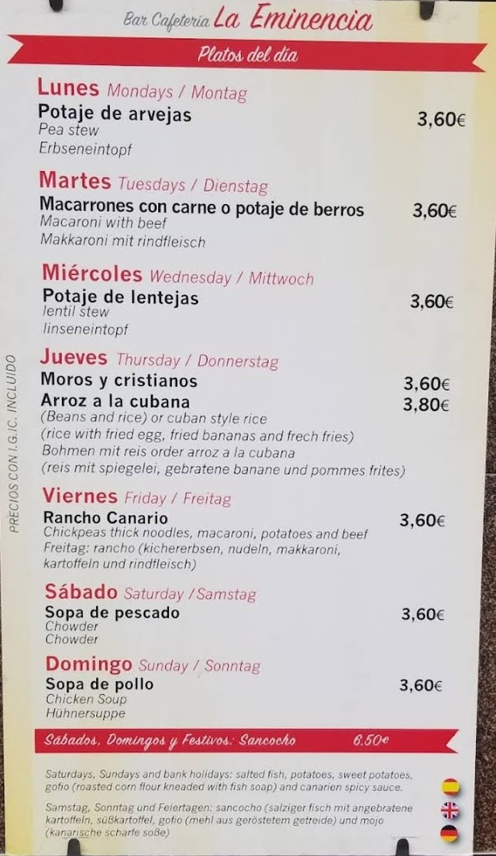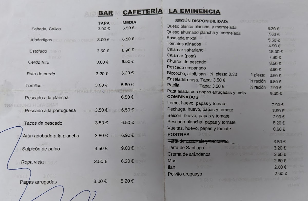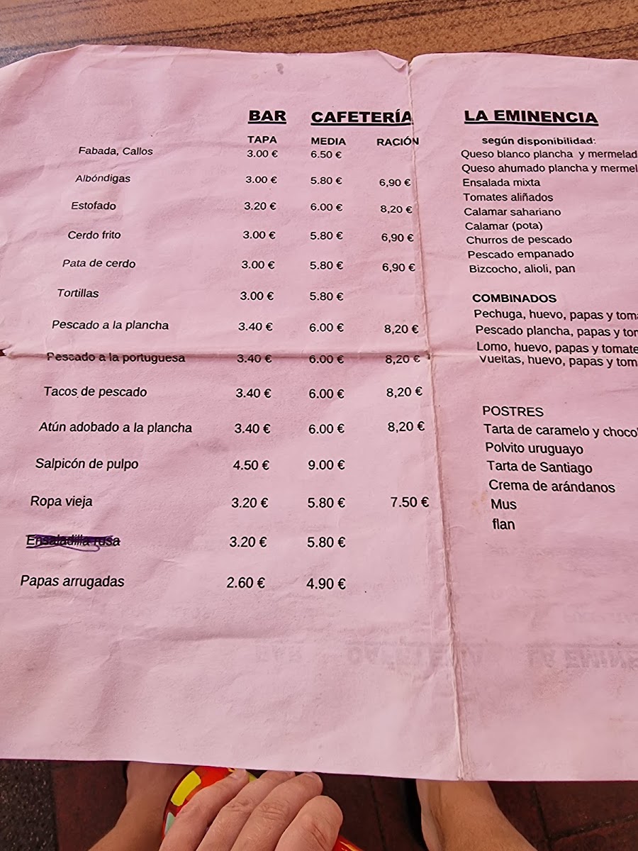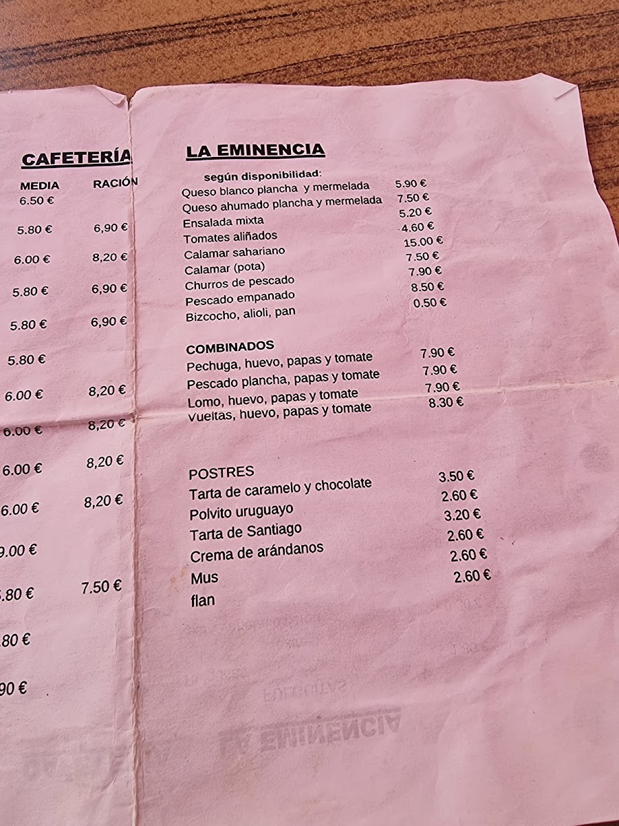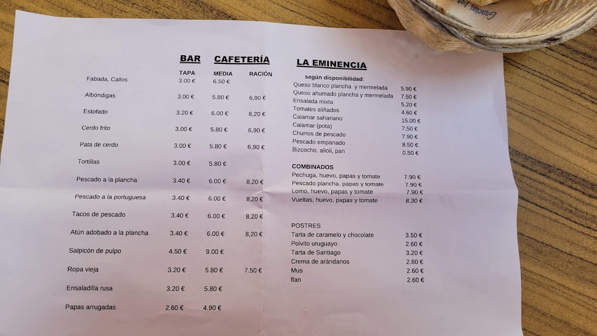 Welcome to La Eminencia, a charming café tucked away on C. Fernando Guanarteme in Las Palmas de Gran Canaria. This local gem is celebrated for its honest, flavorful dishes that reflect traditional Spanish cuisine. The menu boasts an array of delectable options, from mouthwatering tapas like Fabada, estofado, and papas arrugadas to satisfying sandwiches that keep patrons returning for more.